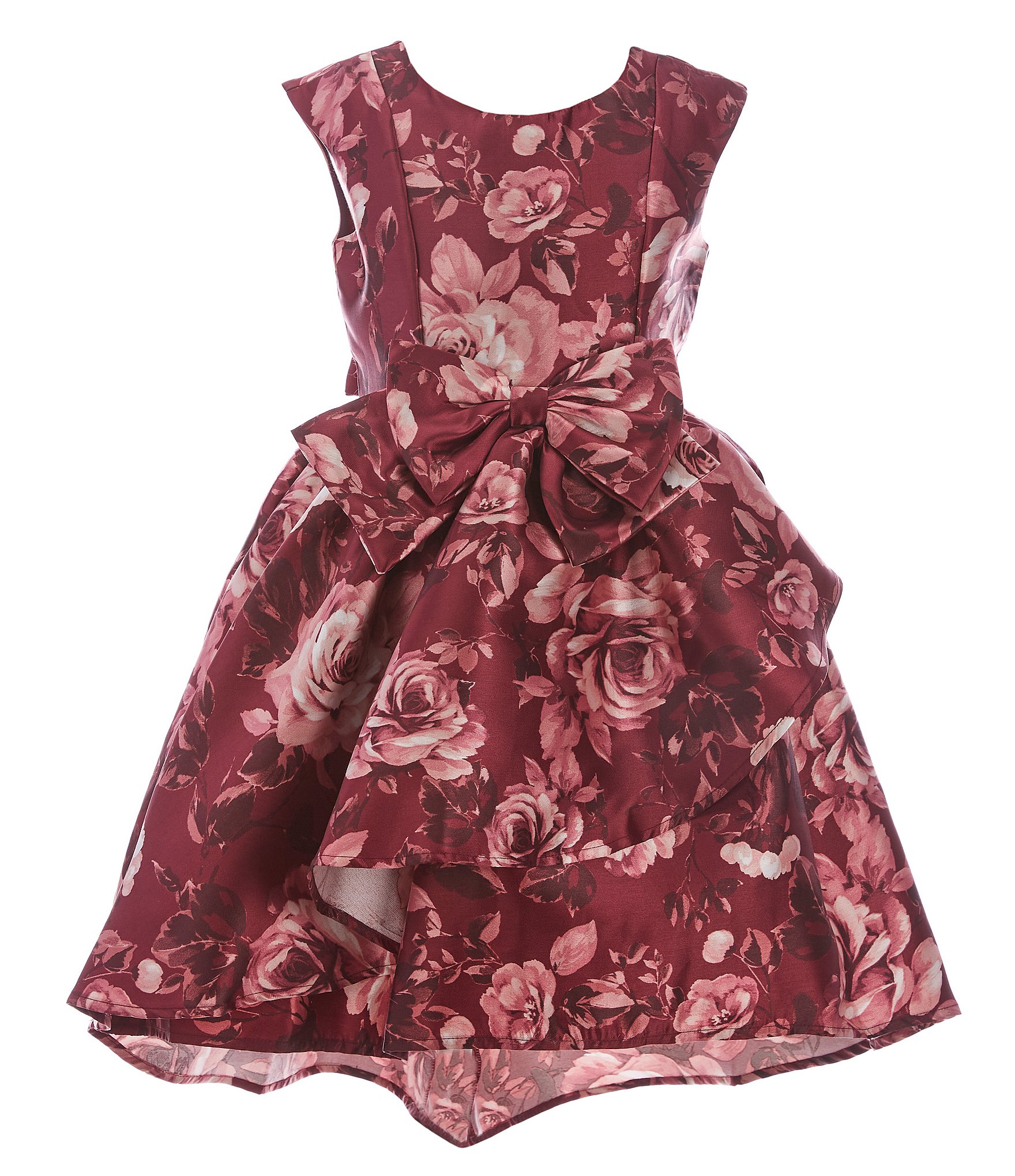BONNIE JEAN FLORAL MIKADO HIGH-LOW HEM FIT AND FLARE DRESS
