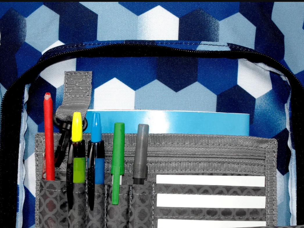 • Organized front pocket with pencil holder, key fob and mesh pocket