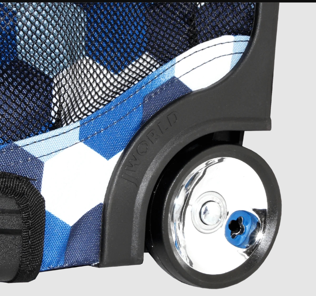 • Rubber Base — Molded rubber bottom holds up to the punishment of dragging sideways and backwards on pavement. No more holes in the bottom of your kids rolling backpack!
